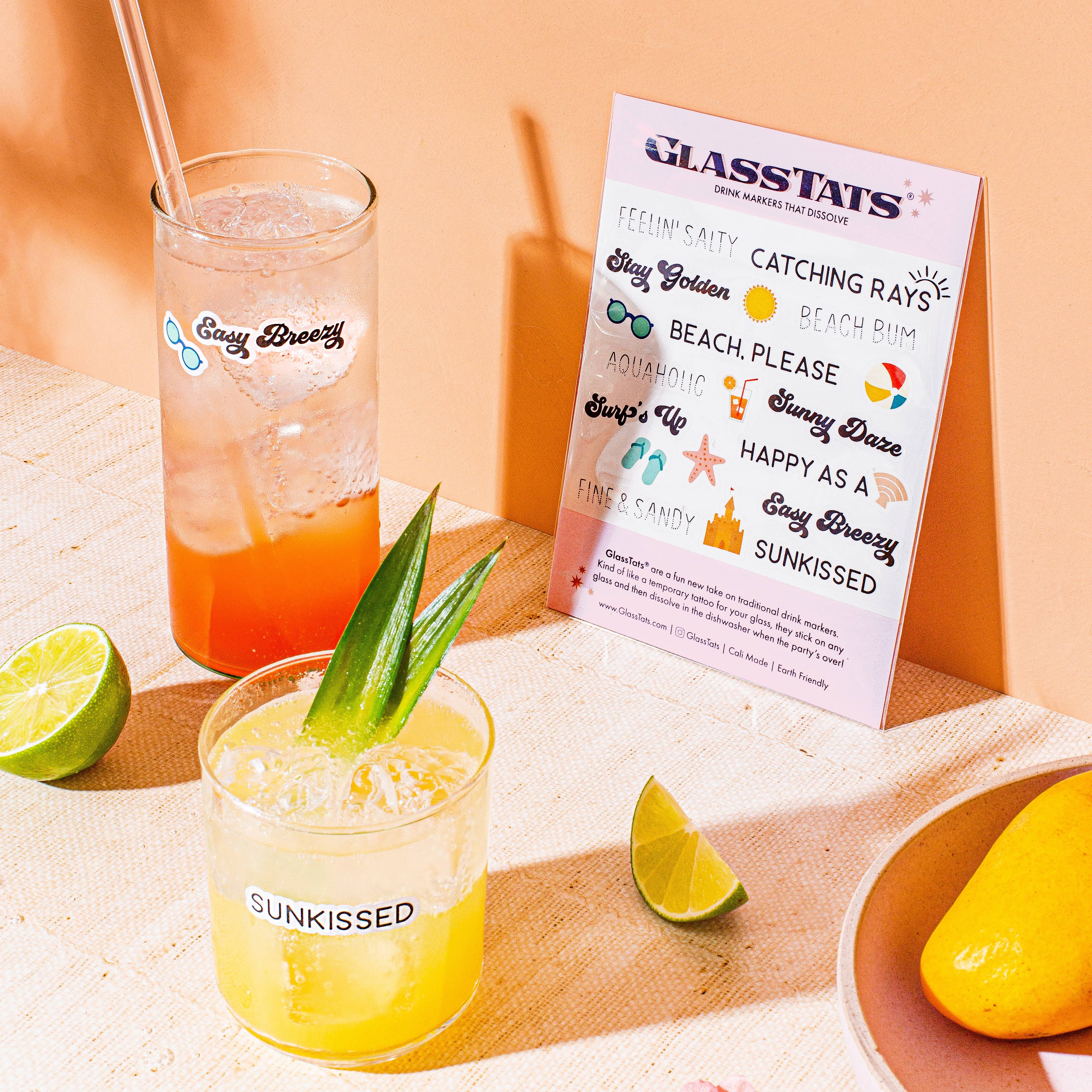 Use GlassTats when you need to know whose drink is whose, or to add flair to your Summer Insta pics. Our dissolvable drink markers stick on any drinkware and dissolve under warm water or in the dishwasher.