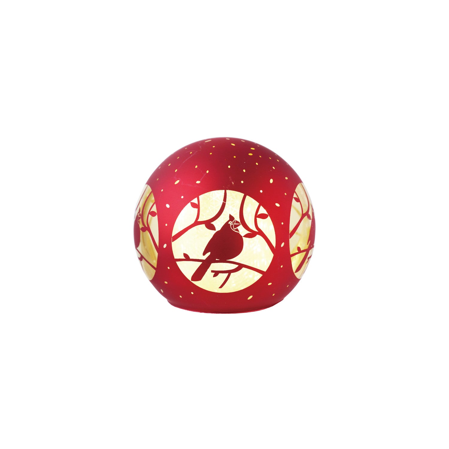 Glass Ball with LED Light & Laser Etched Cardinal on Branch