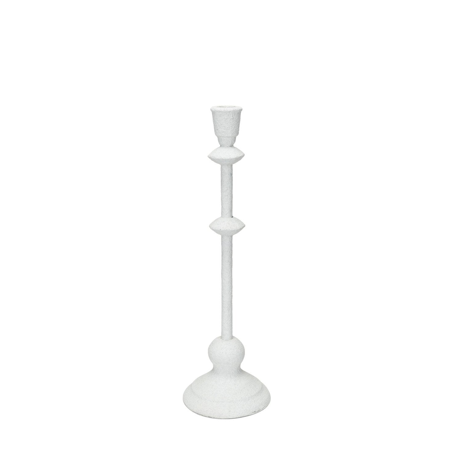 The metal taper holder in sand finish, antique white is a charming addition to any home decor. Made from sturdy metal, this taper holder features a beautiful sand finish that adds a rustic touch to its antique white color. The intricate design and detailing of the holder give it an elegant appeal while maintaining its casual vibe. With its tapered shape and wide base, it can securely hold taper candles of various sizes, creating a warm and inviting atmosphere. The sand finish adds texture to the sleek design, giving it an interesting visual dimension. Perfect for both indoor and outdoor use, this taper holder is versatile and can be placed on a mantlepiece, dining table, or even outside on a patio during those cozy evening gatherings. Its neutral color palette allows for easy coordination with different interior styles and color schemes. Elegant yet understated, this is the perfect accent piece for adding warmth and ambiance to any space.