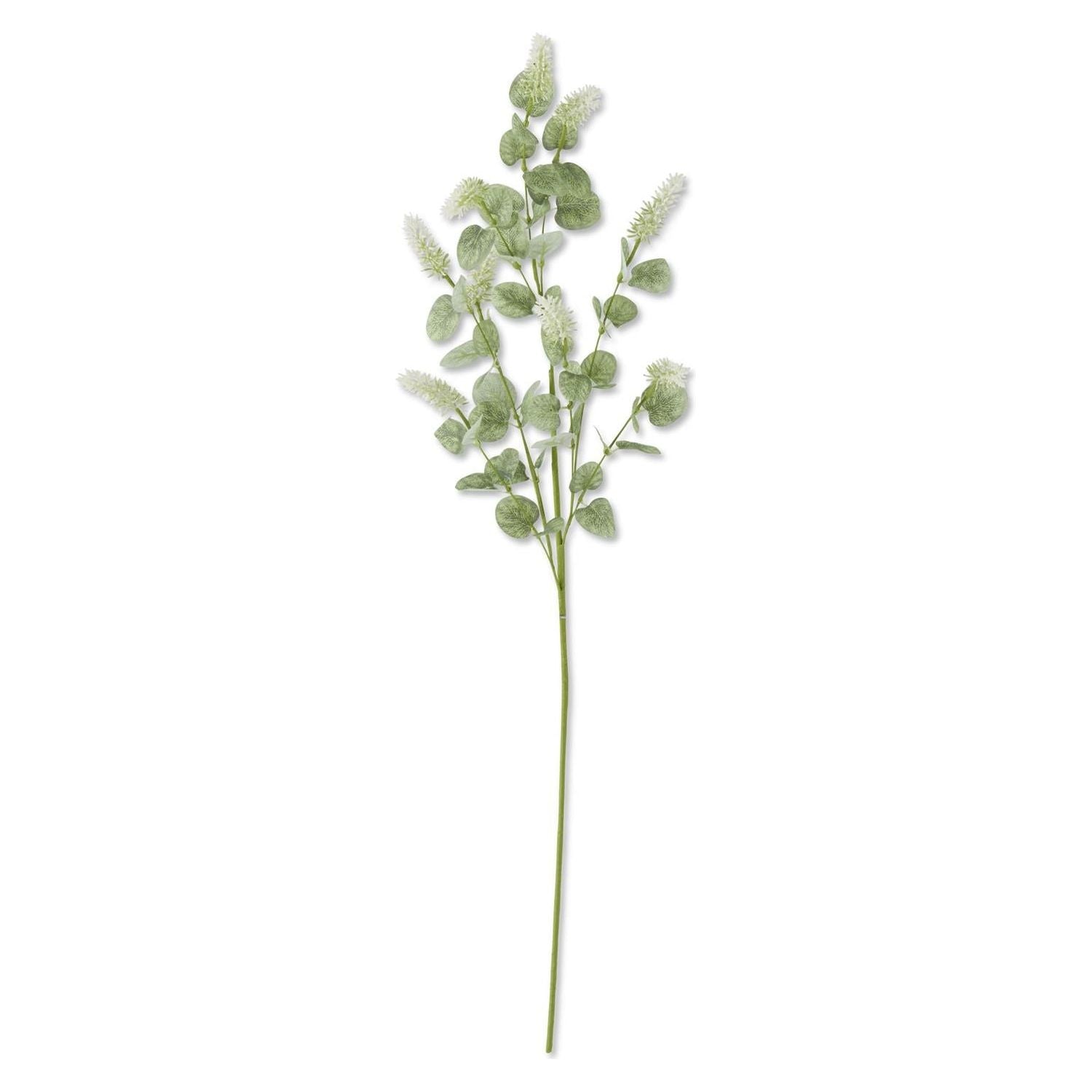 Create a stunning floral arrangement with the Purple Lavender w/Eucalyptus Leaves Stem. Add it as a filler to elevate your existing bouquets or bundle a few stems together for a bold statement. Made with high-quality faux materials, this stem adds a touch of elegance and versatility to any floral display.