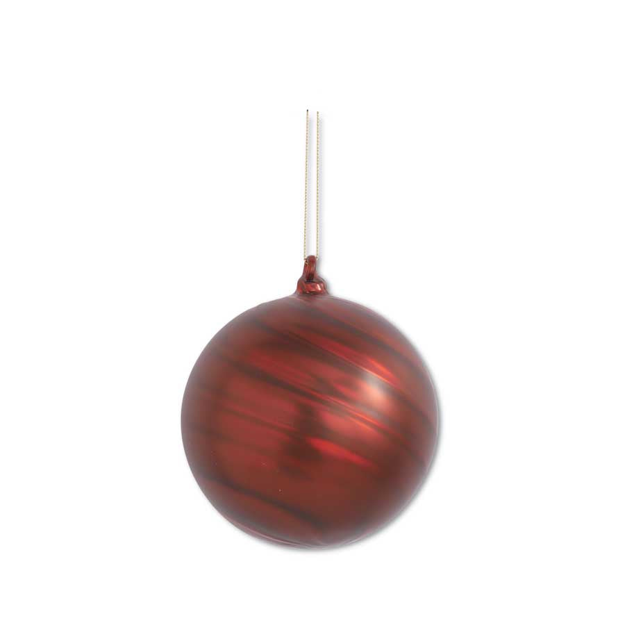 This holiday season, add a touch of elegance to your home with our Matte Red Swirl Round Glass Ornament. This beautiful hand-blown glass ornament features a matte finish that will give your Christmas decor a contemporary look. The red swirl design is sure to make this ornament a standout in your home. Hang it on your tree or display it in a special place in your home and enjoy the compliments from your guests.