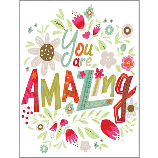 This folded card measures 4.25" x 5.5" (A2) and comes with a matching envelope, making it perfect for any occasion where gratitude is due. The intricate floral design paired with the uplifting sentiment, "You are amazing. So grateful for you," ensures your message resonates warmly with the recipient.