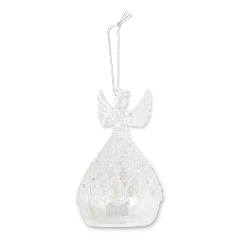 Clear Glass Lattic Bead LED Angel Ornament for Holiday Home Tree and Table Decoration