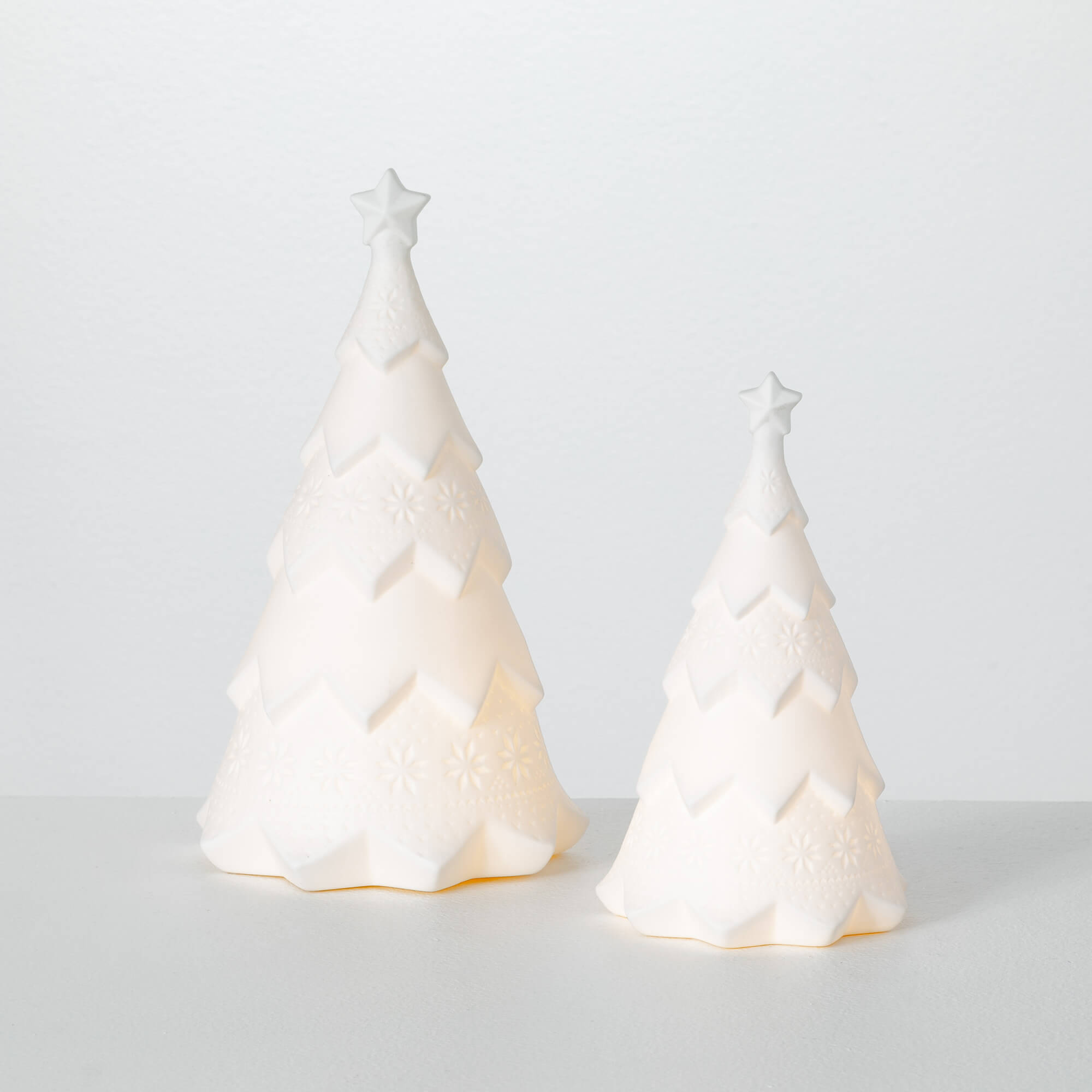 Illuminate your home with these beautiful lighted Christmas trees. Made from carefully crafted porcelain and debossed with snowflakes, these trees will surely brighten up your holidays this season.