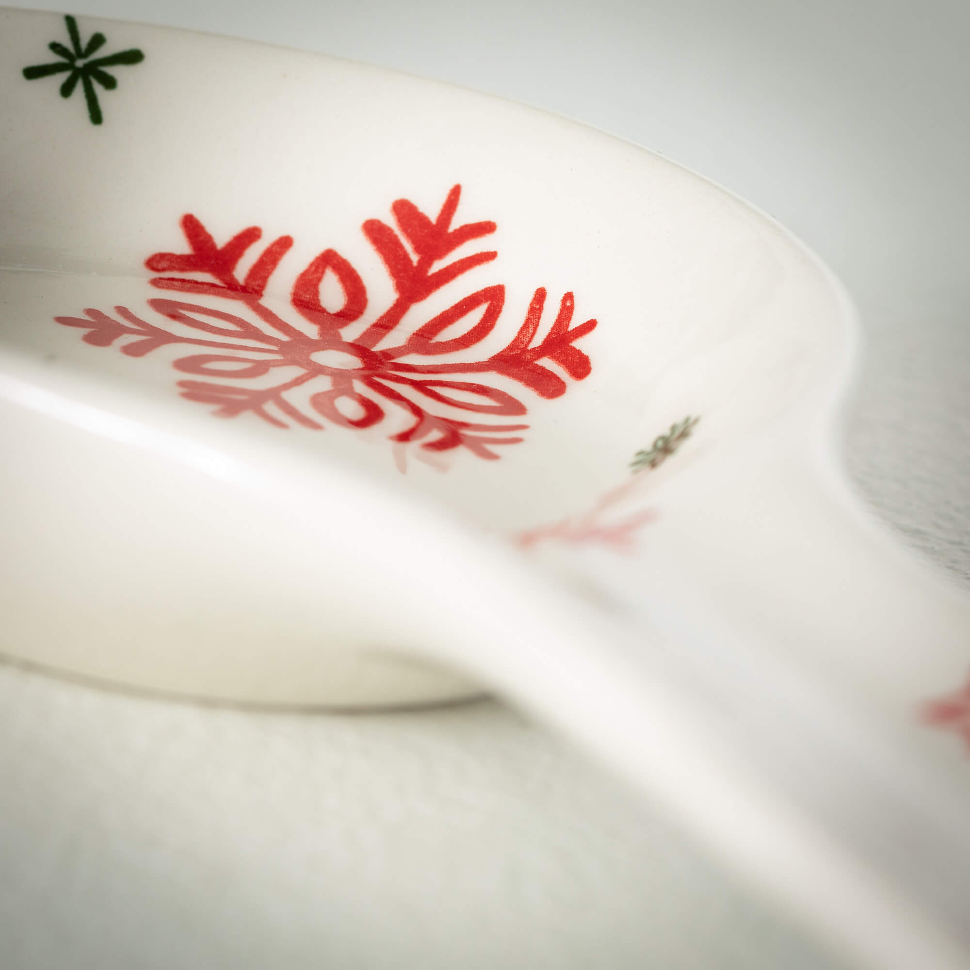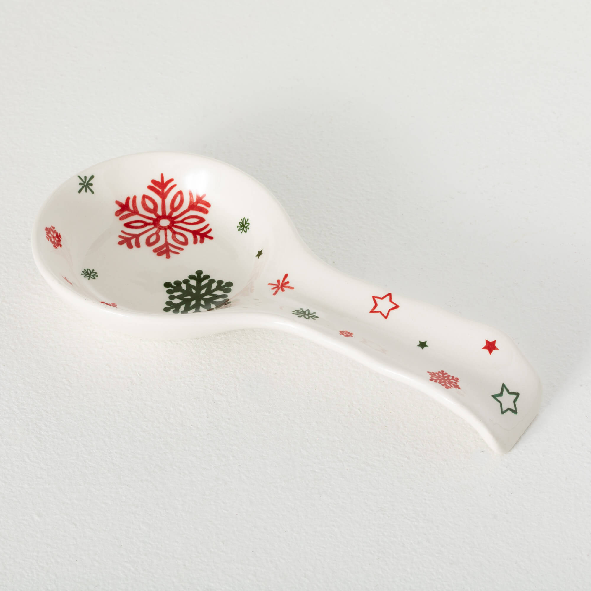 Adorn your kitchen with a cheerful graphic snowflake spoon rest, featuring a wintry pattern that's a wonderful addition to you Holiday decorating. This delightful Christmas spoon rest also makes a thoughtful gift.
