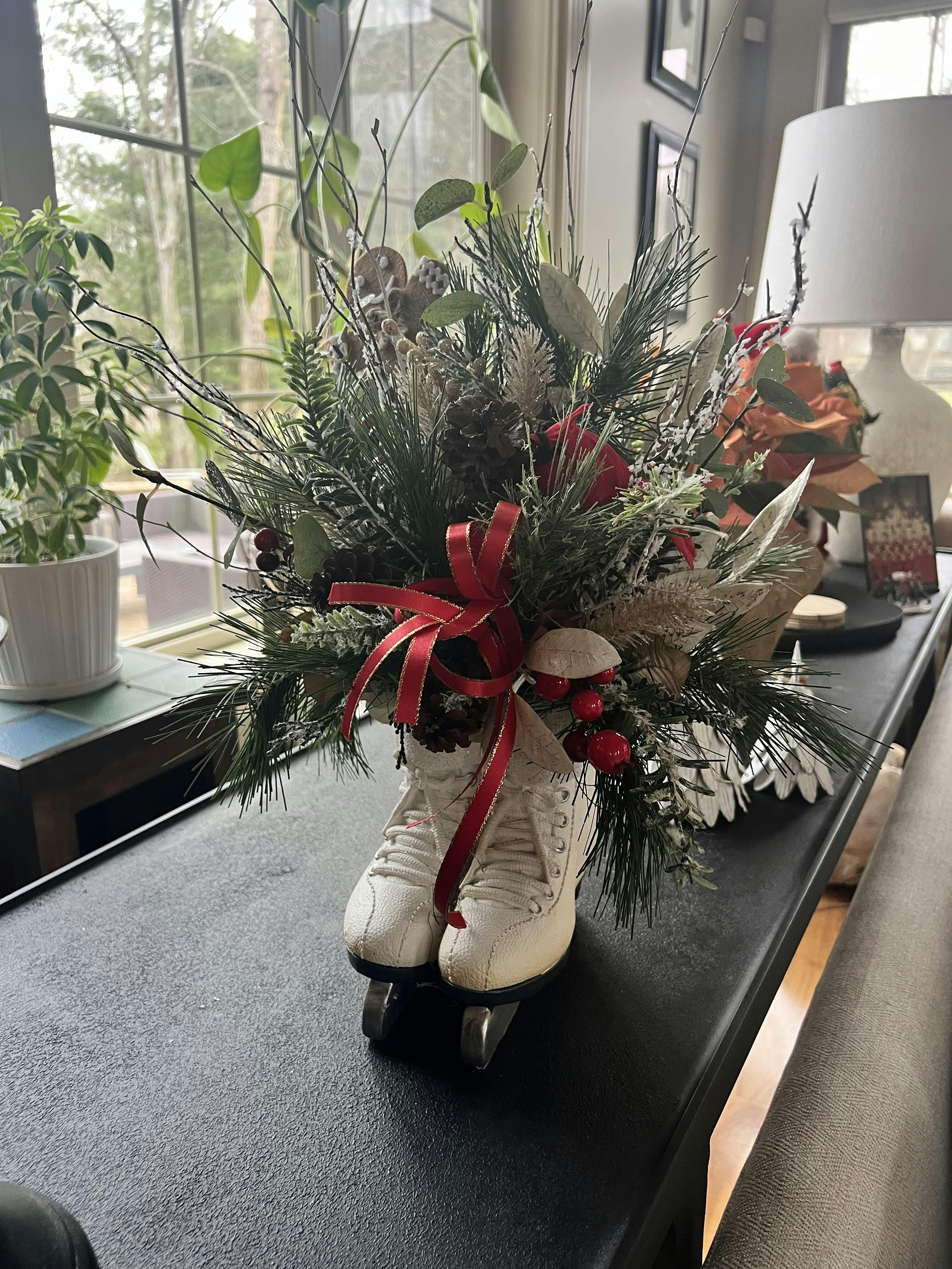 I have filled these skates with beautiful faux arrangements and given many as gifts to sisters, in laws, work colleagues and the like! Everyone loves the charm of these cute skates!