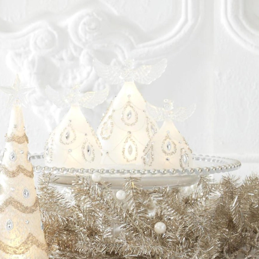 Transform your holiday decor with the Glass LED Angel w/Silver Jewels, an exquisite centerpiece that radiates festive elegance and warmth. Crafted from premium-quality glass and adorned with sparkling silver jewels, this angel captures the spirit of the season while adding a sophisticated touch to any room.