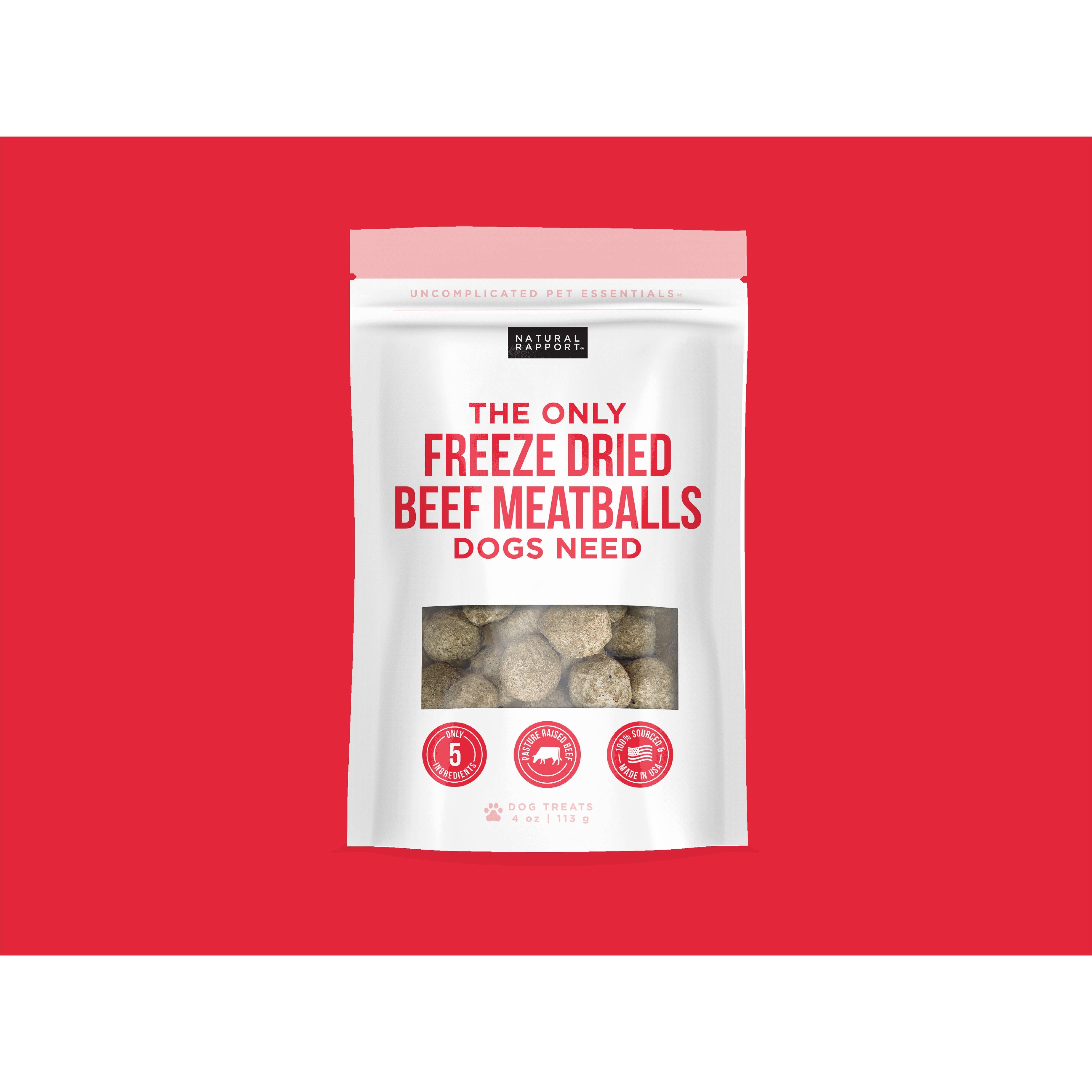 No need to beef up your search for the perfect treat for your pup, these meatballs are an udder delight with ingredients like pasture-raised whole beef, including hearts & livers, and a little salt and sage to round it all out. Not only are our beef meatballs 100% sourced and manufactured in the USA without extra Chemicals, Glycerin, or Dyes— what truly makes our Beef Meatballs different is this: we use high quality ground beef and organ meat making them the perfect, healthy, nutrient dense treat for your pup. The best quality beef for your pup means the best muscle building proteins for stamina & endurance. Now, that is a powerful protein ball that will have your pup moo-ving and grooving all day long!