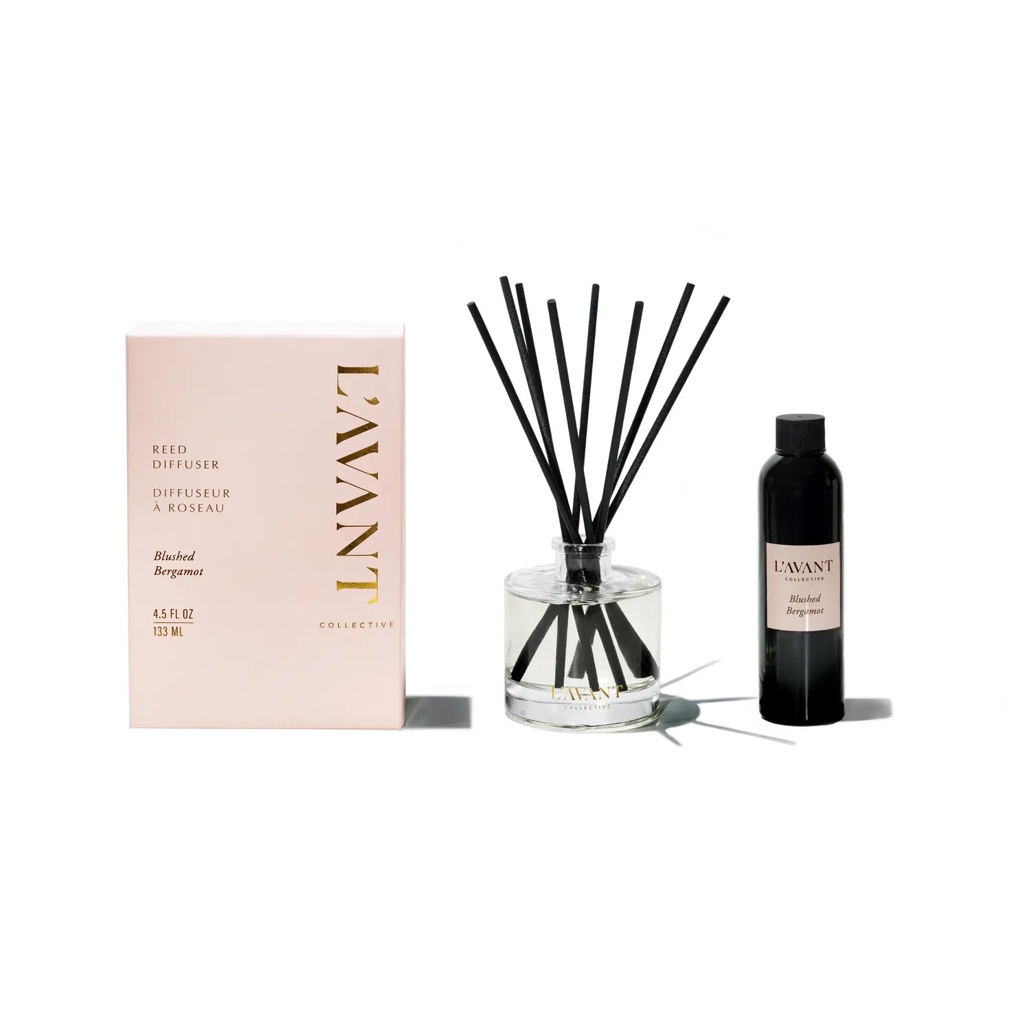 The Blushed Bergamot Reed Diffuser will fill the air with refreshing bergamot and orange blossom, enhanced by inviting hints of amber and cedar. Fresh Linen, will fill your space with delicate notes of ylang-ylang and bamboo mixed with soothing lavender and geranium essential oils. Ambre Santal is a warm, refined fragrance where bold sandalwood creates a haven of luxury, evolving into a comforting blend of cardamom, amber, and cedar.