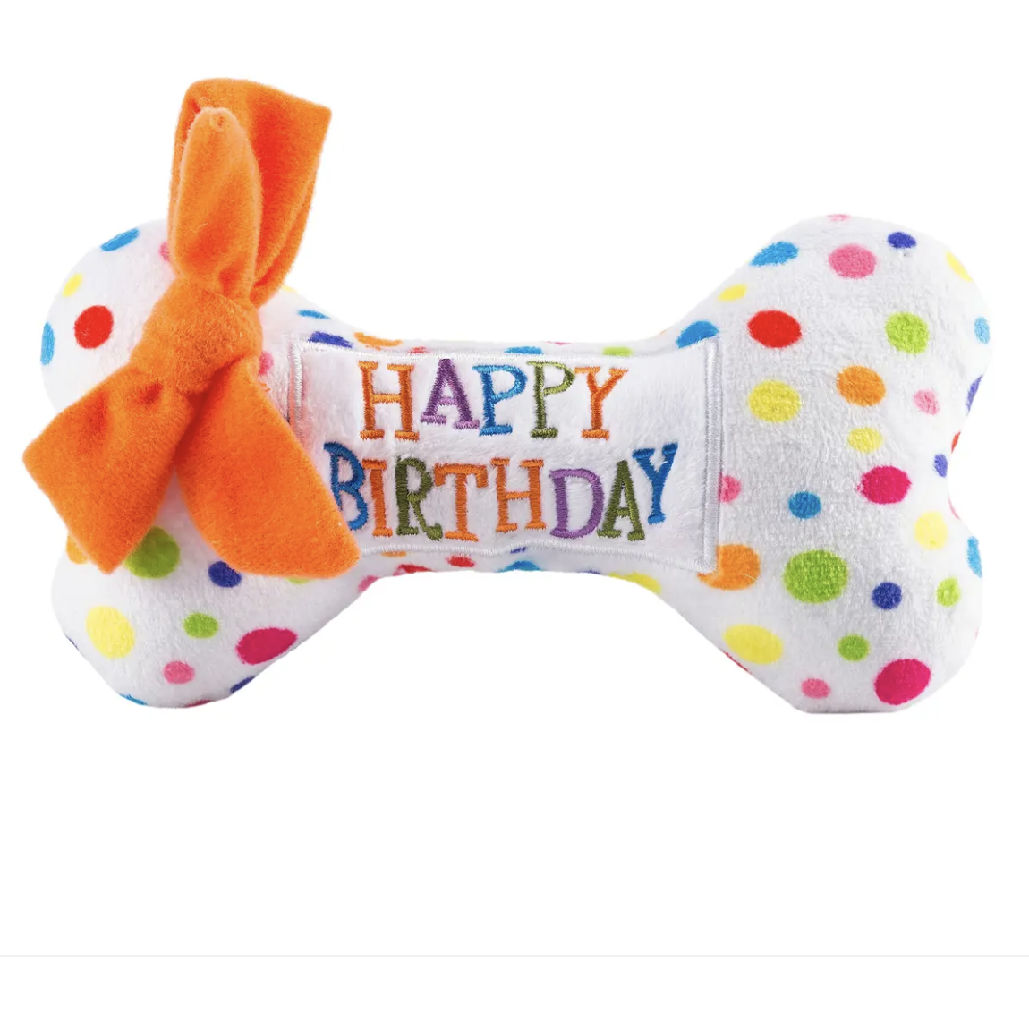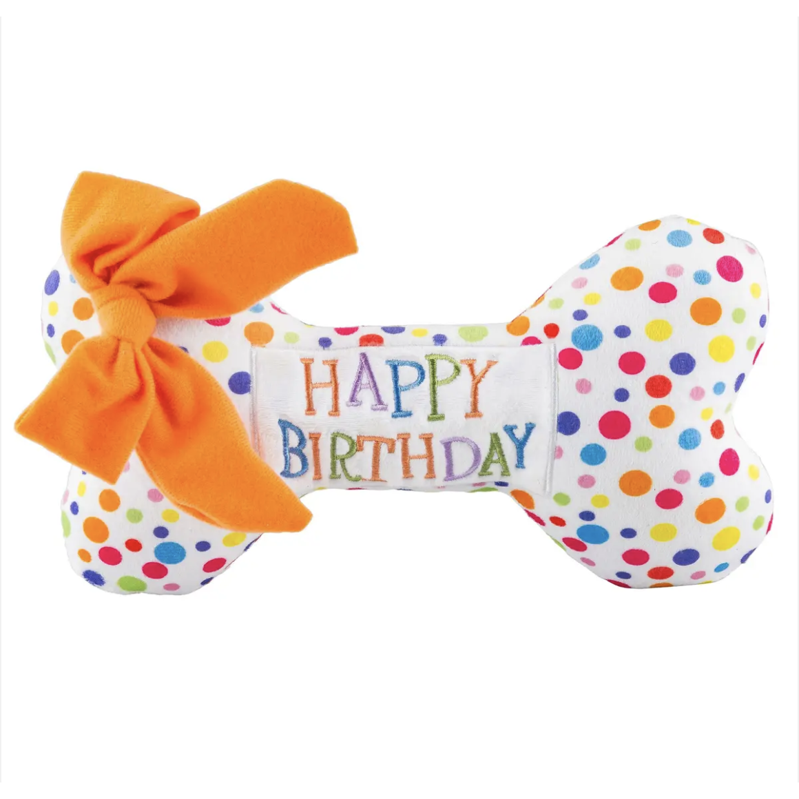 Check out our brand new "Pawty All The Time" Birthday Bone toy! Brand new from Haute Diggity Dog. This fun, bright colored Birthday Bone is made of soft plush with a fun squeaker inside. Happy Birthday embroidered on one side and Pawty All The Time embroidered on the other side. Birthday Bone available in 3 sizes.