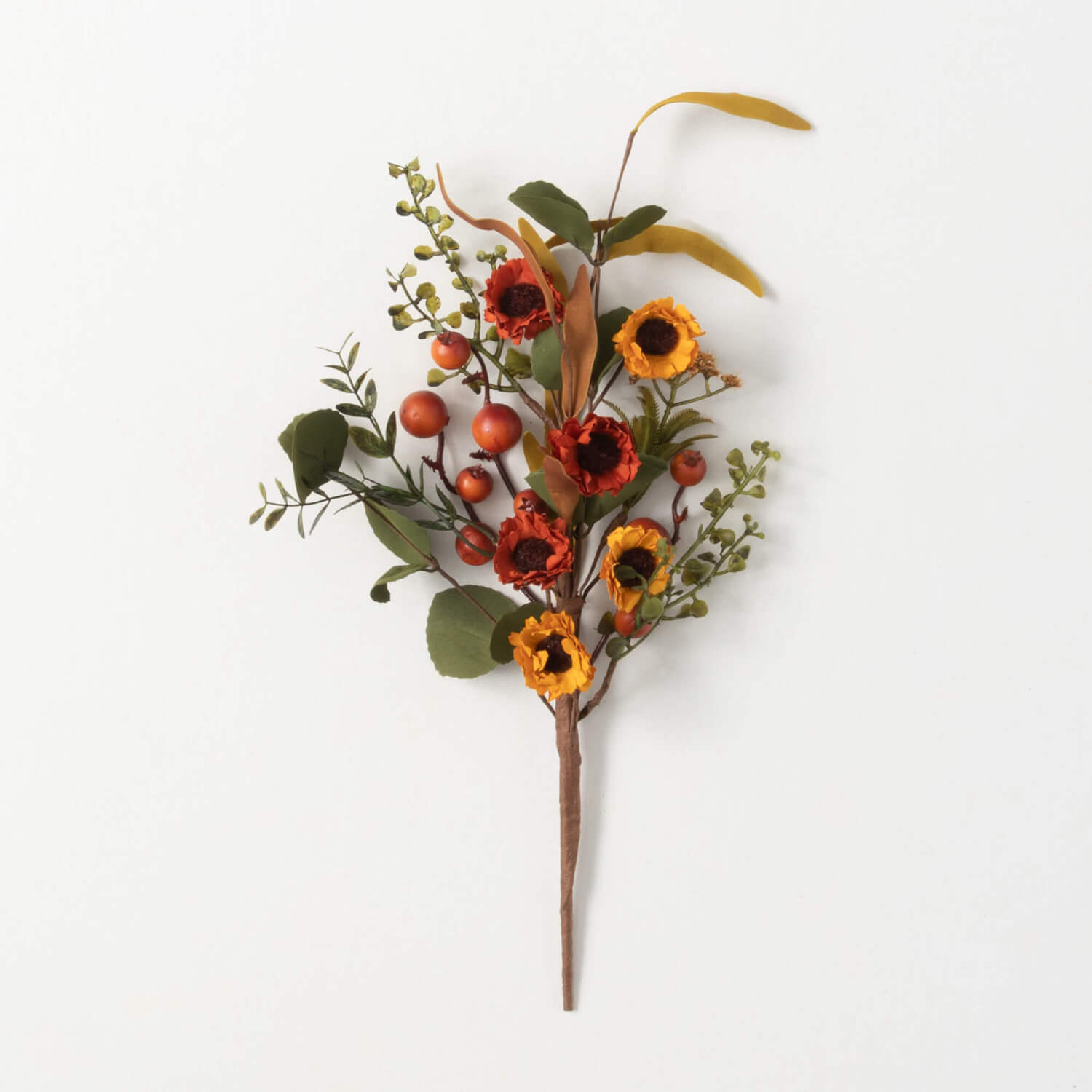 Have some fun this autumn season with this lovely berry and flower pick. Made with bright, colorful florals paired with clusters of berries, this unique pick is the perfect final touch to your fall decor.