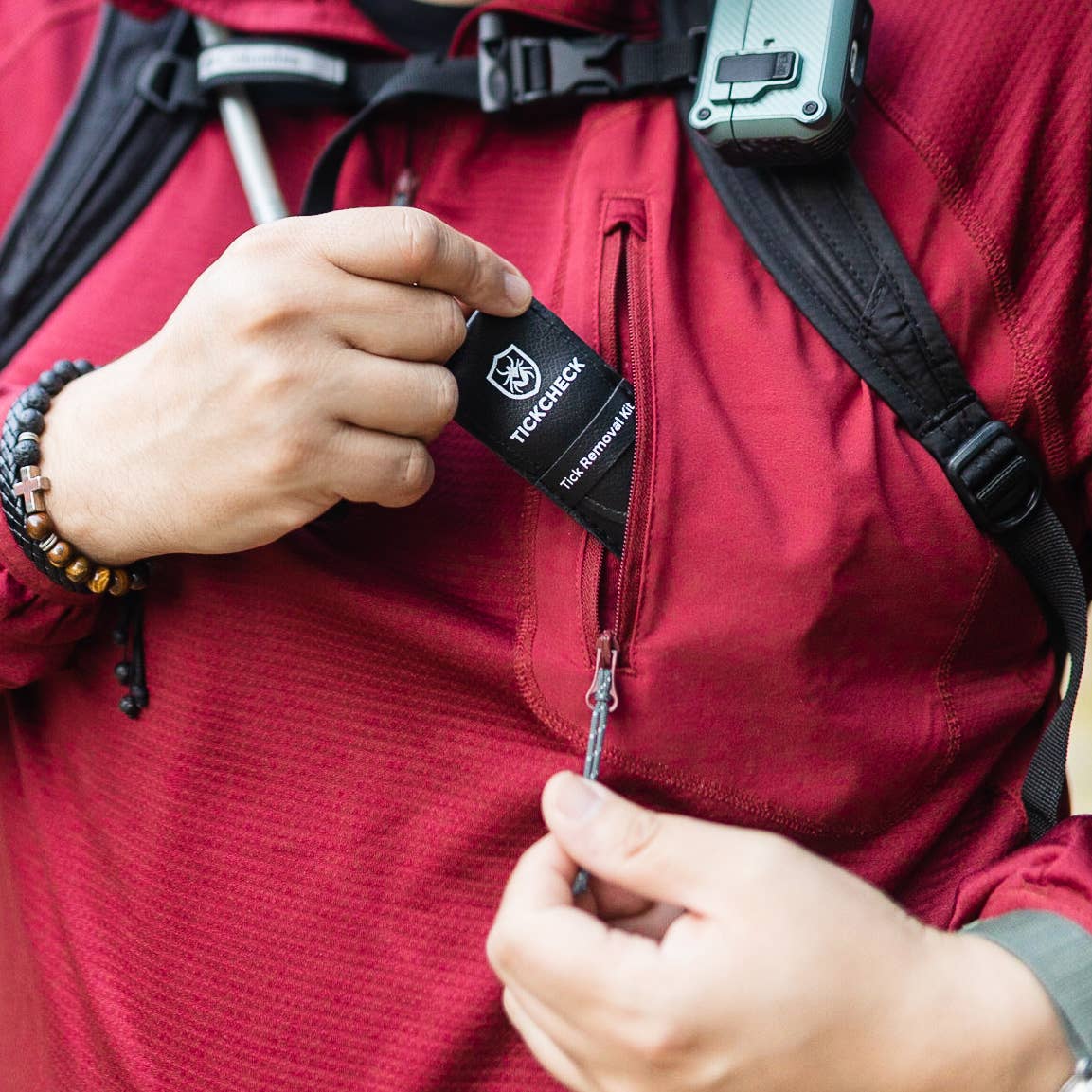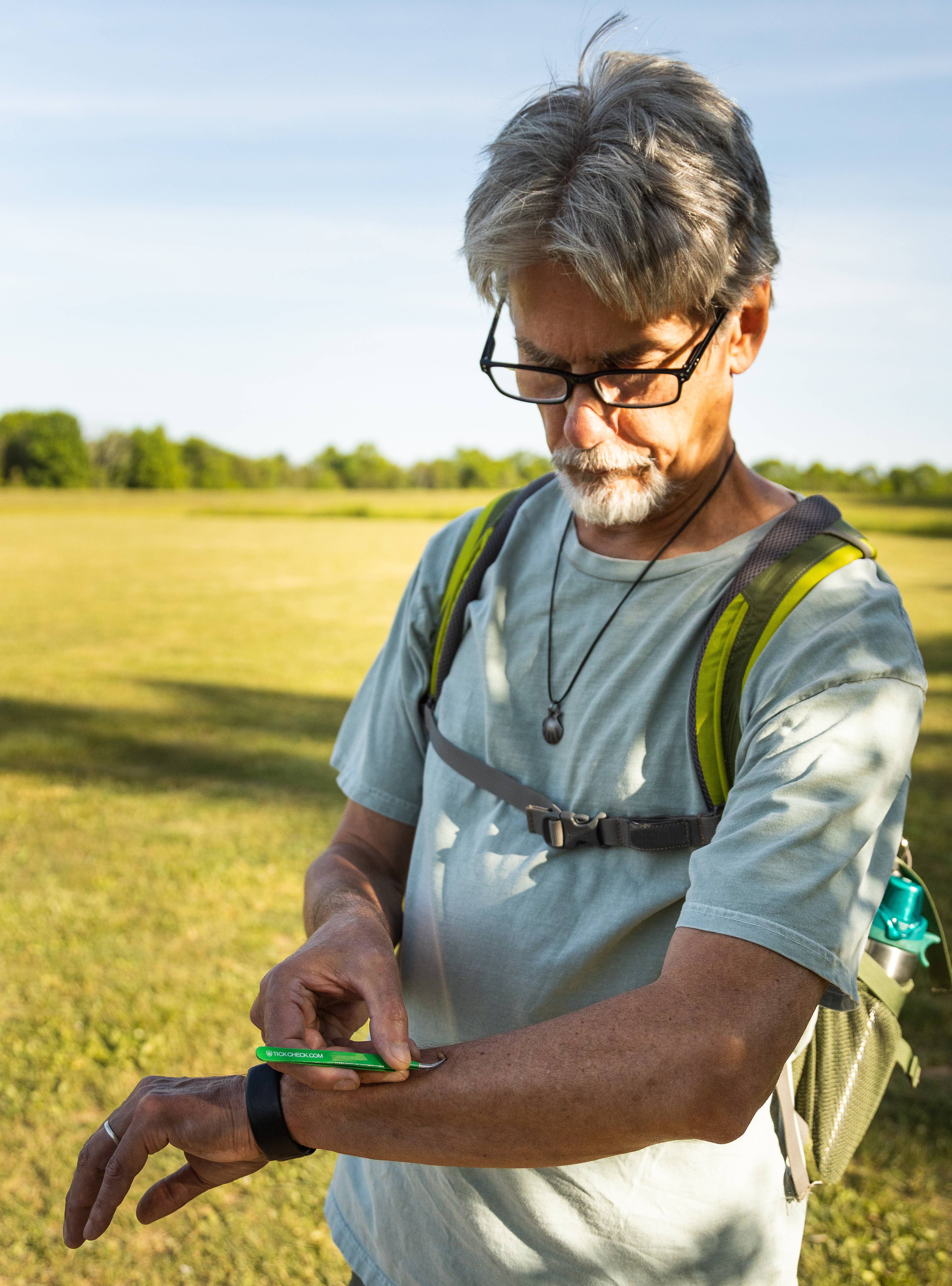 The Premium Tick Remover Kit includes a stainless steel tick remover tool for safely removing larger embedded ticks and a specially shaped super-fine-tip pair of tweezers for removing nymphs and small deer ticks, both stored in a leatherette pouch. Each kit also includes a tick identification card with instructions on how to safely remove ticks. Now sold in eco-friendly retail packaging.