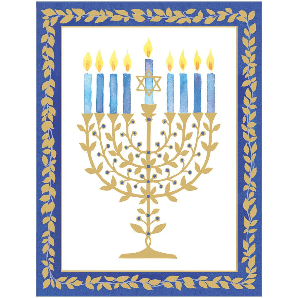 Gold Leaves Menorah Foil - Hanukkah Boxed Holiday Cards