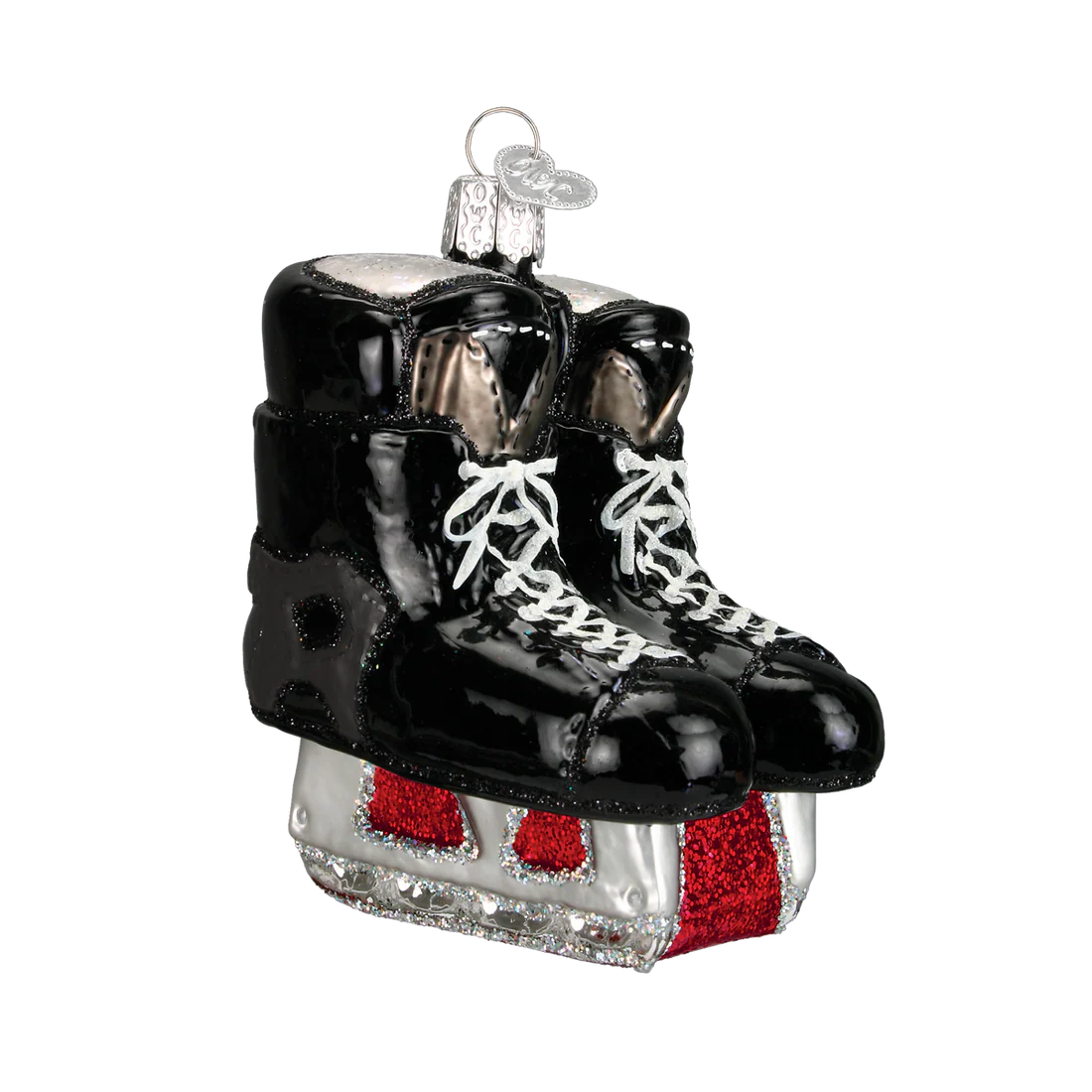 One of the most popular team sports, Hockey was invented in the mid-1800s in Canada. Played on ice, it requires speed, strength, stamina, great skating ability and fearlessness. The glass Hockey Skates ornament makes a fun gift for any player or fan.