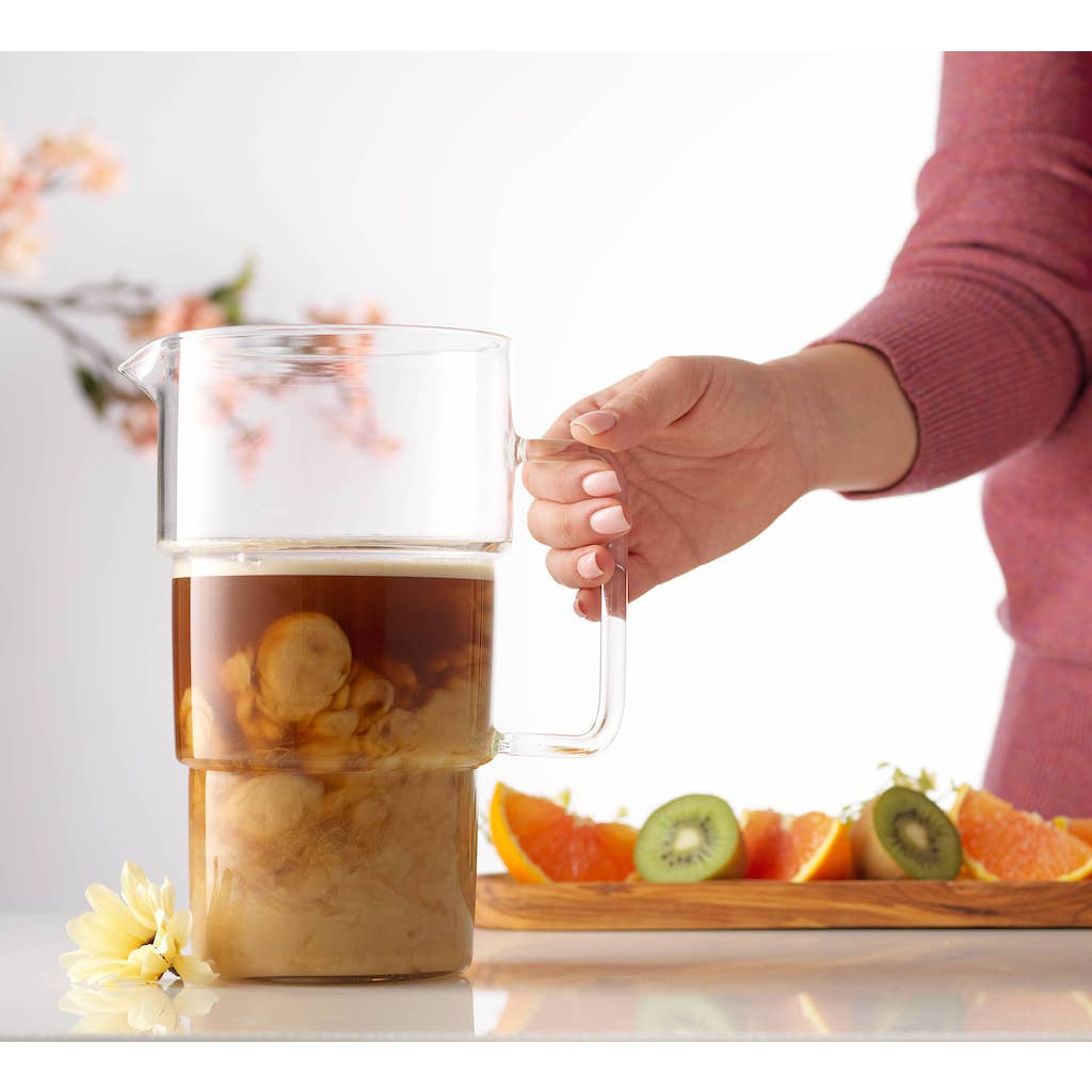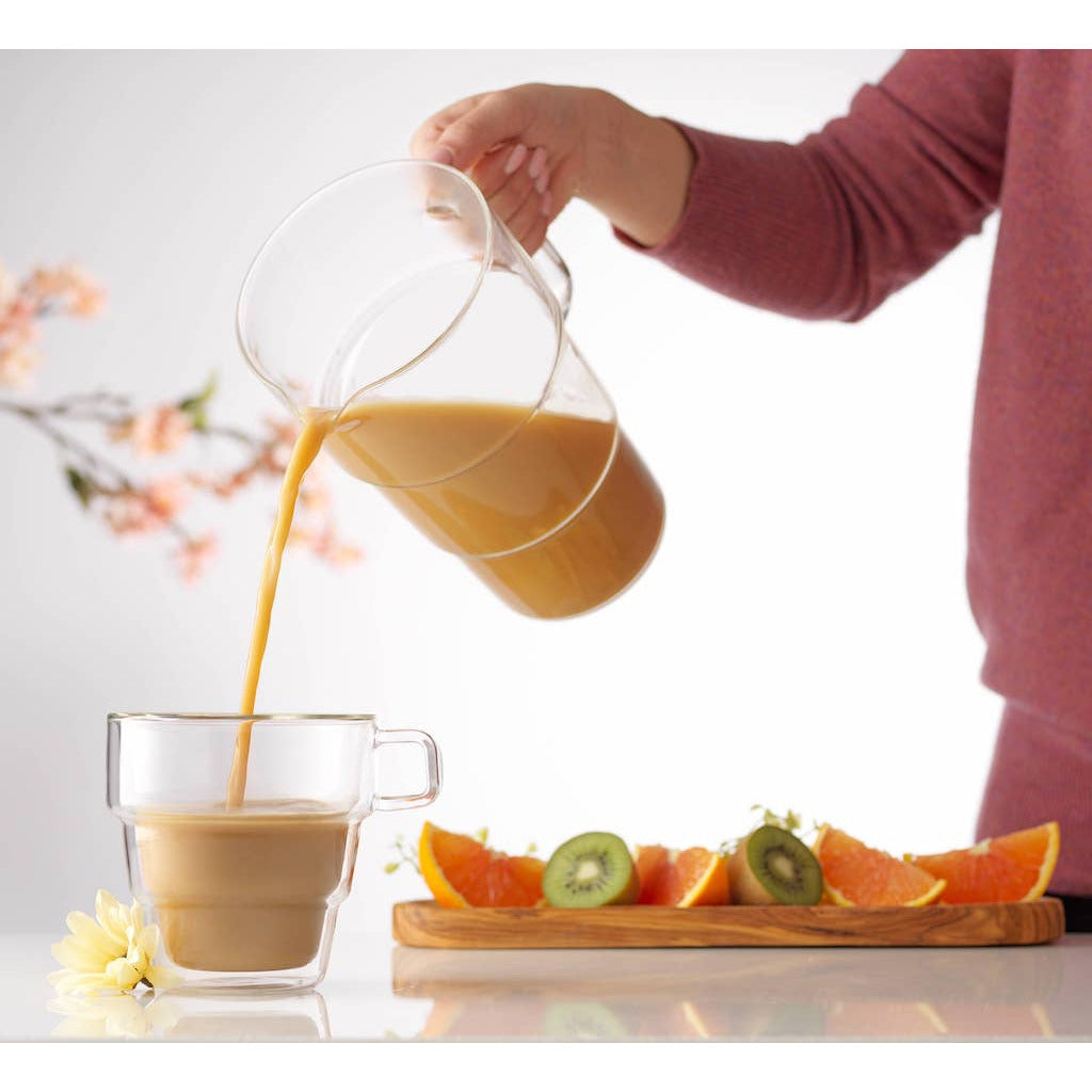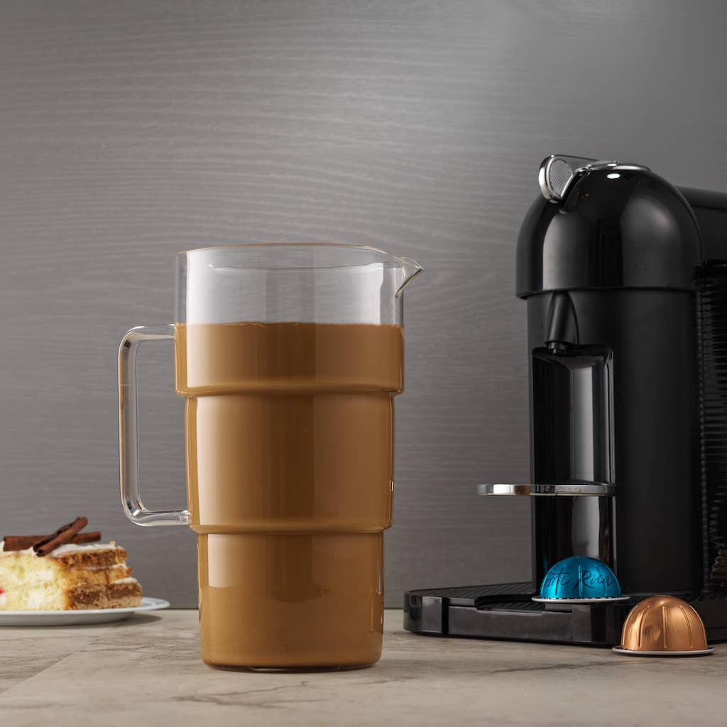If you’re done with plastic pitchers, or looking for a unique glass jug, you can now drink for joy with the unique Pila Glass Beverage Pitcher. You can fill it up with hot coffee, chilled Sangria and cold brew tea or use it as a milk jug or beer pitcher. • Dishwasher and Microwave Safe • Comes ready in a beautiful gift box