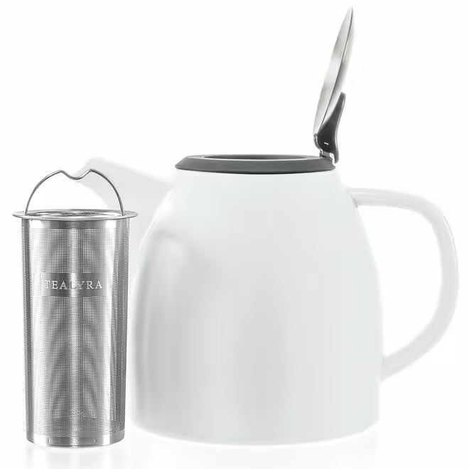 Drago Ceramic Teapot comes complete with an extra-fine stainless-steel infuser basket and convenient fitted silicone hinged lid for easy use. Our newly designed tall superfine stainless steel filter allows you to brew even just one cup if desired, it is also effortless to load and clean after steeping! The extra-fine infuser is perfect to steep any loose tea- such as large whole leaf teas like oolongs, white teas, and even herbal blends such as fine cut rooibos.