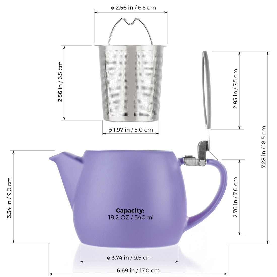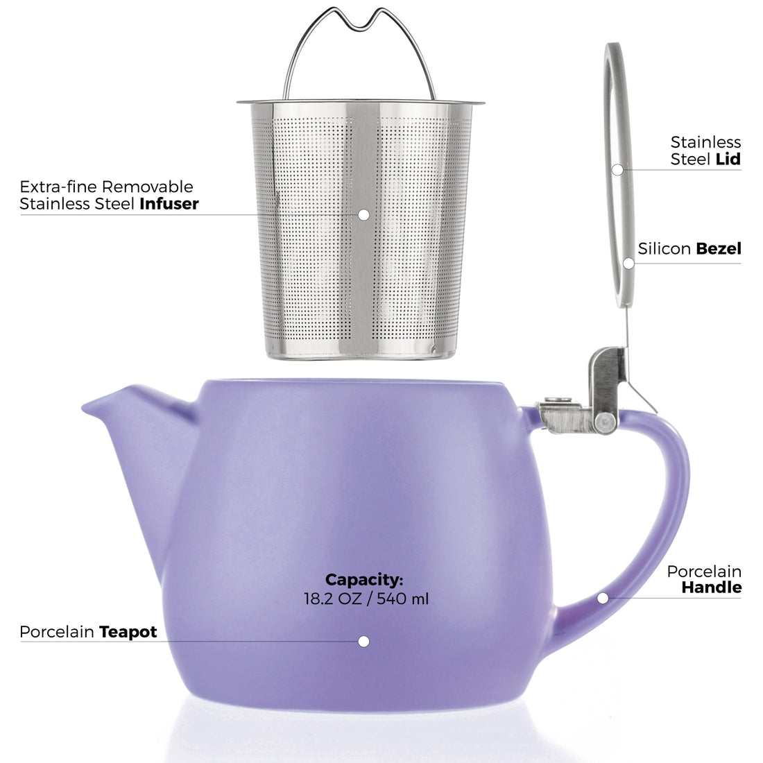 Pluto Violet Porcelain Teapot Infuser 18.2 oz.