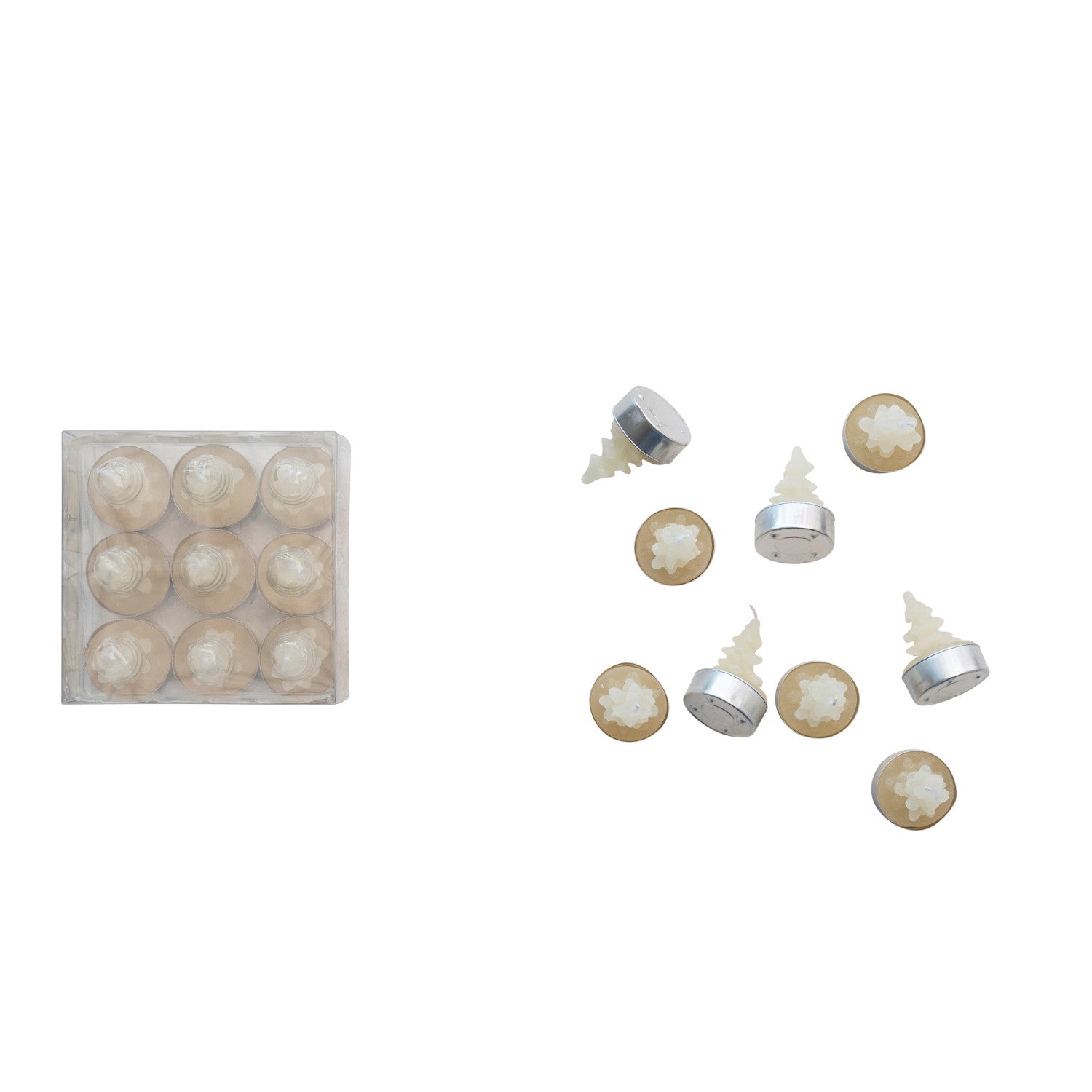 This festive set of unscented tea light candles features the silhouette of a holiday tree. Designed to create a cozy and inviting atmosphere, perfect for the holiday season.