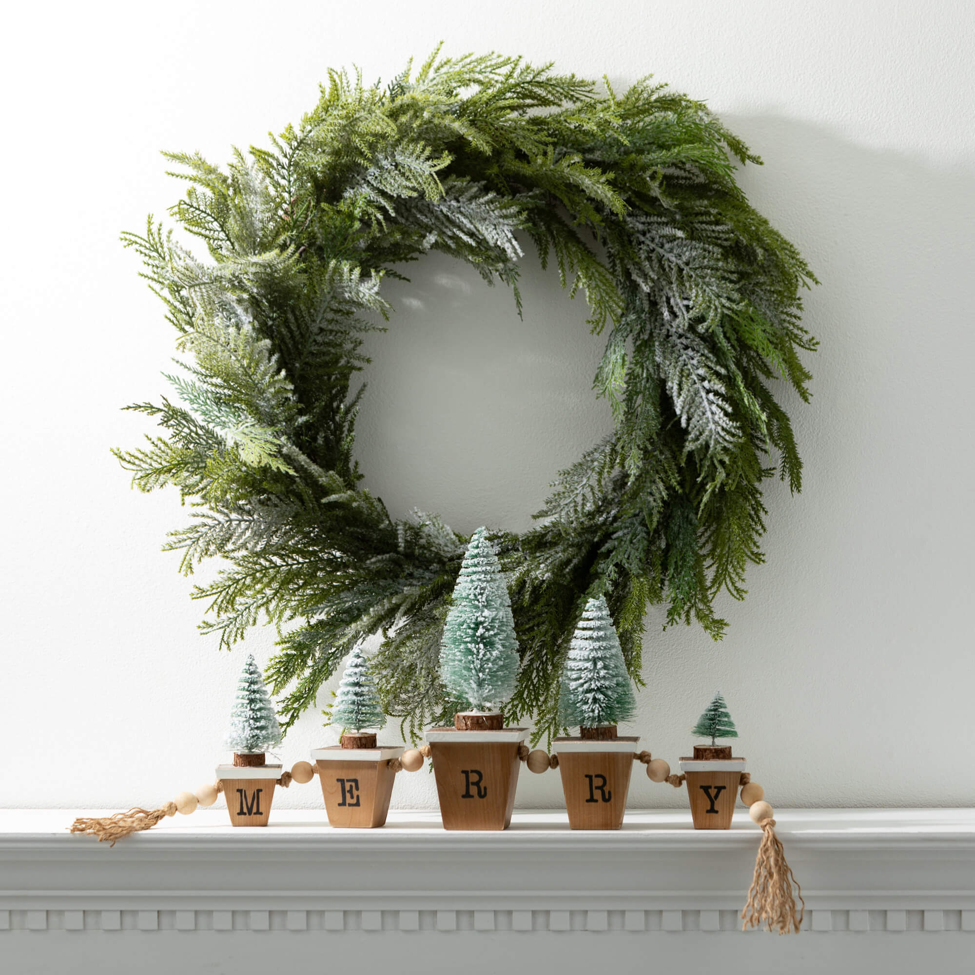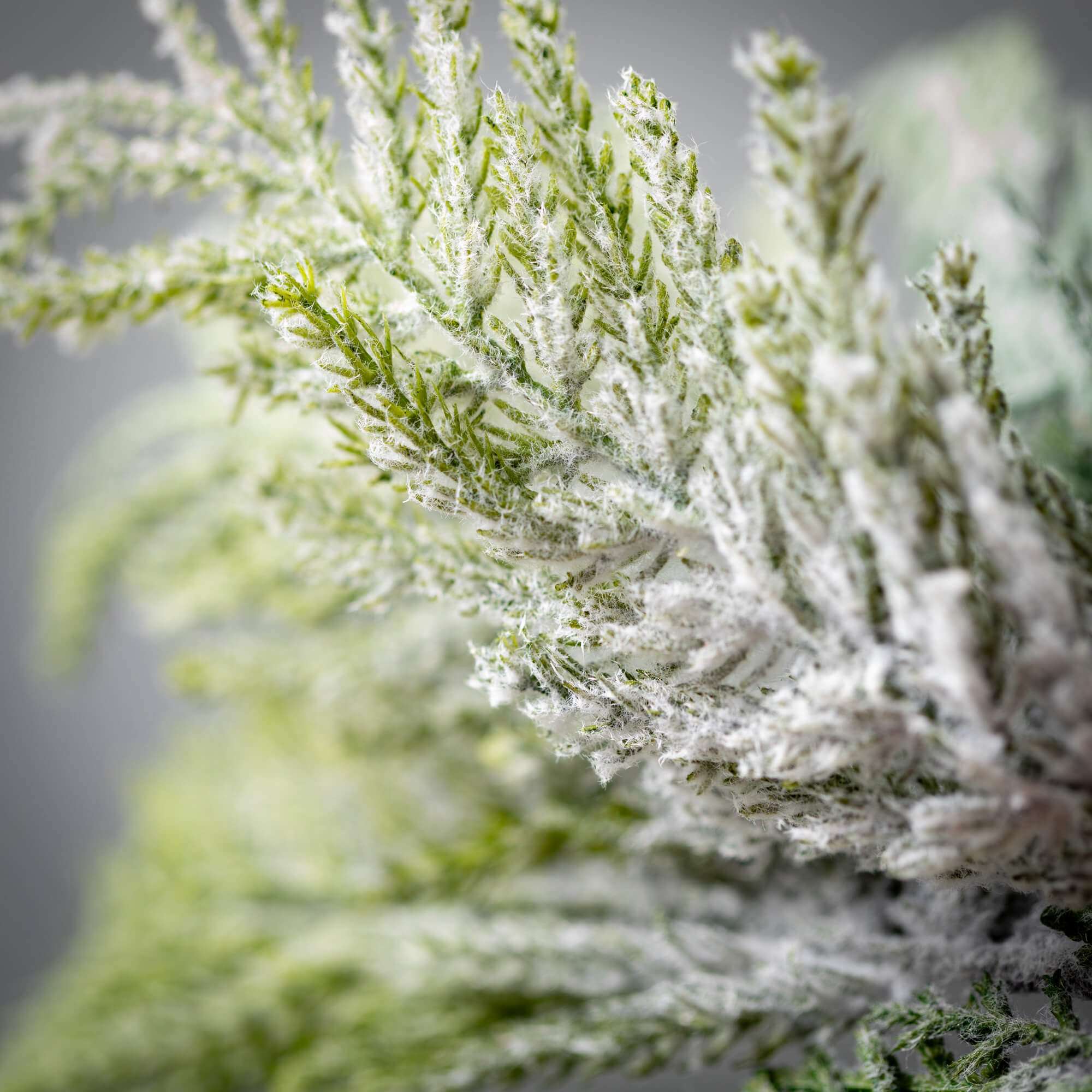 This extra-large mixed cedar wreath brings the outdoors in with natural appeal. Measuring a generous size, it makes a showstopping statement when hung on the door or mounted on a wall. Whether you're decorating for the season or simply seeking a touch of nature's calm all year long, this Norfolk Island pine cedar wreath adds warmth, charm and character to any space with its simple yet abundant evergreen style. FreshCut Pine is a new approach to permanent botanicals. These real feel botanicals are still shapable, but have a lovely soft touch feel. Its realistic appearance and scentless nature means it's the hassle-free choice for those who want the look of fresh greenery without the upkeep.
